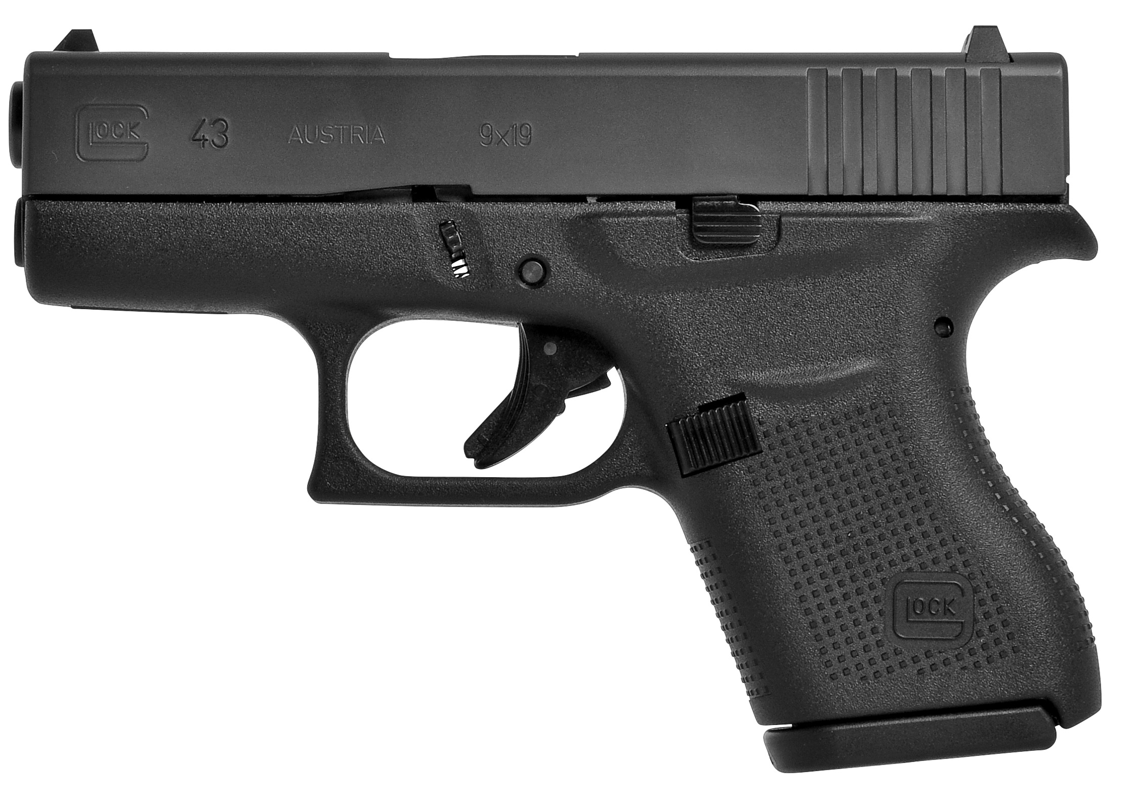 Nejmenší pistole GLOCK s jednořadým zásobníkem v ráži 9x19 vhodná pro skryté nošení. Sdandardně dodávána v sadě s jedním zásobníkem na 6 nábojů a druhým zásobníkem s botkou též na 6 nábojů.