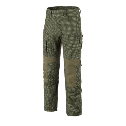 Prémiové kalhoty určené především pro profesionály ve výkonu služby, nadšence do airsoftu nebo paintballu, či pro náročné uživatele, kteří od kalhot vyžadují maximální odolnost při zachování pohodlí. Střihem vychází z polských výsadkářských kalhot používaných v padesátých letech minulého století. Spolu s MCDU taktickou košilí tvoří kalhoty perfektní základní vrstvu oblečení do jakékoli dynamické situace. Jako na první výrobek značky HELIKON byl na kalhotách použit čtyřcestný strečový materiál DyNyCo, což je odolná směs nylonu a bavlny obohacená o elastická vlákna. Oblasti pasu, rozkroku a zadní části kolen jsou opatřeny prodyšnými a rychleschnoucími vsadkami materiálu Versastretch®. Kolena a sed jsou zesílena 500D Cordurou, přičemž kolena disponují vlastní kapsou na vložení chráničů. V případě potřeby lze pomocí pásků se suchým zipem nastavit obvod kolen a lem nohavic.