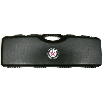 Plastový kufr na dlouhou složenou zbraň má spodní část tvarovanou pro uložení zbraně a příslušenství a vrchní část je vyložena tvarovaným molitanem, do kterého se zbraň zamáčkne a nehrká.