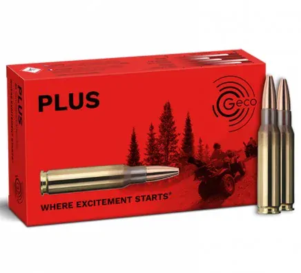 Nové náboje GECO Plus znamená precizní technologii výroby střel s využitím nejnovějších technických standardů. GECO bonding (spojování) je technologie, která extrémně pevně spojuje jádro střely s pláštěm. GECO PLUS proto proniká cílem od vstřelu až po výstřel téměř bez tvorby střepin a to i u těžké zvěře nebo při zásahu kostí. Jedinečně pevné spojení olověného jádra a pláště přitom garantuje nepoškození zvěřiny, v ulovené zvěři nezůstávají téměř žádné střepiny z rozkladu střely. Deformace a následný rozklad je zcela určována utvářením pláště střely a dává munici její hloubkový účinek.