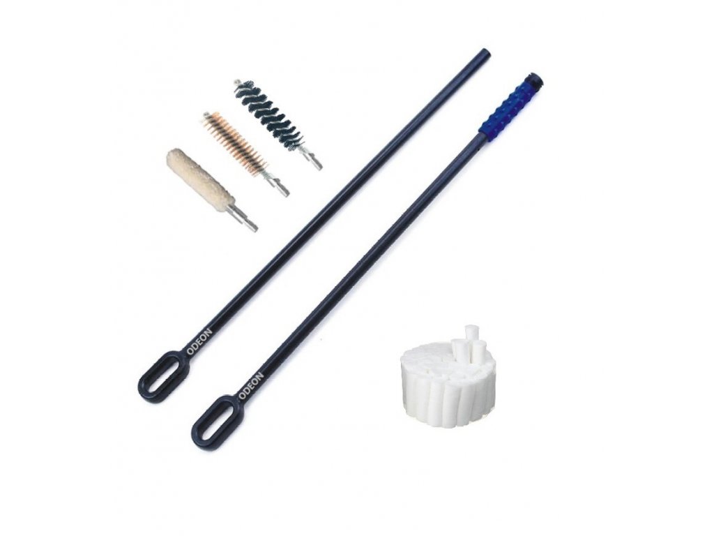 Sada obsahuje tyčku pro čištění zbraně pomocí čistících kartáčků a tyčku s pružinovým zámkem a čelistmi pro čistění pomocí bavlněných vatových válečků nebo bavlněných hadříků.