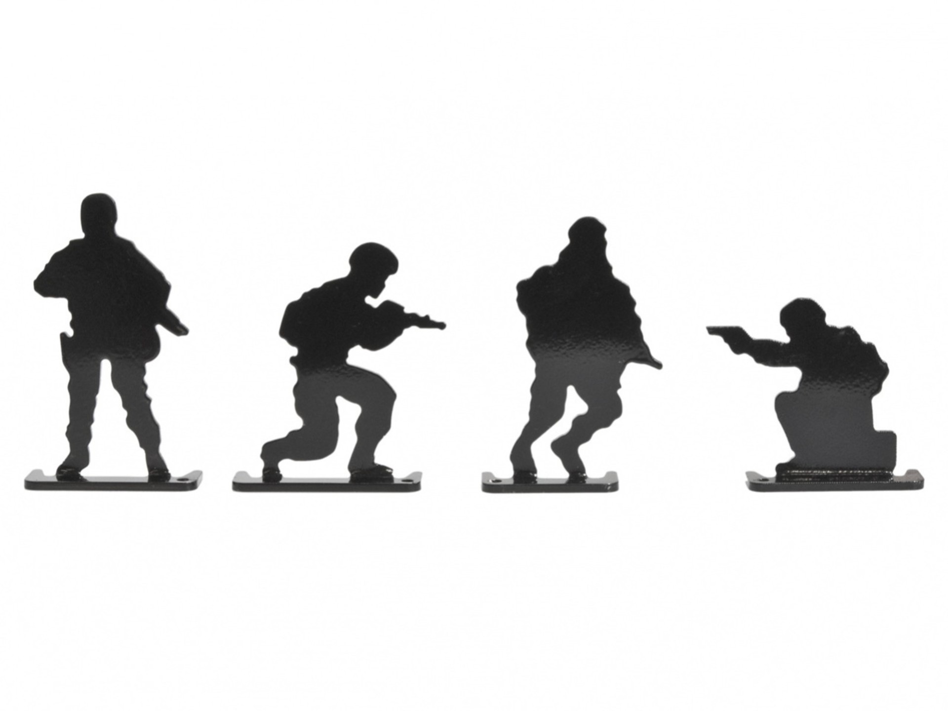 Beast Hunter Army 4, sada čtyř různých kovových vojáků černé barvy, použitelné jako cíle pro střelbu, vyrobeno z kovu o tloušťce 3mm, testováno pro střelivo diabolo a steel BB.