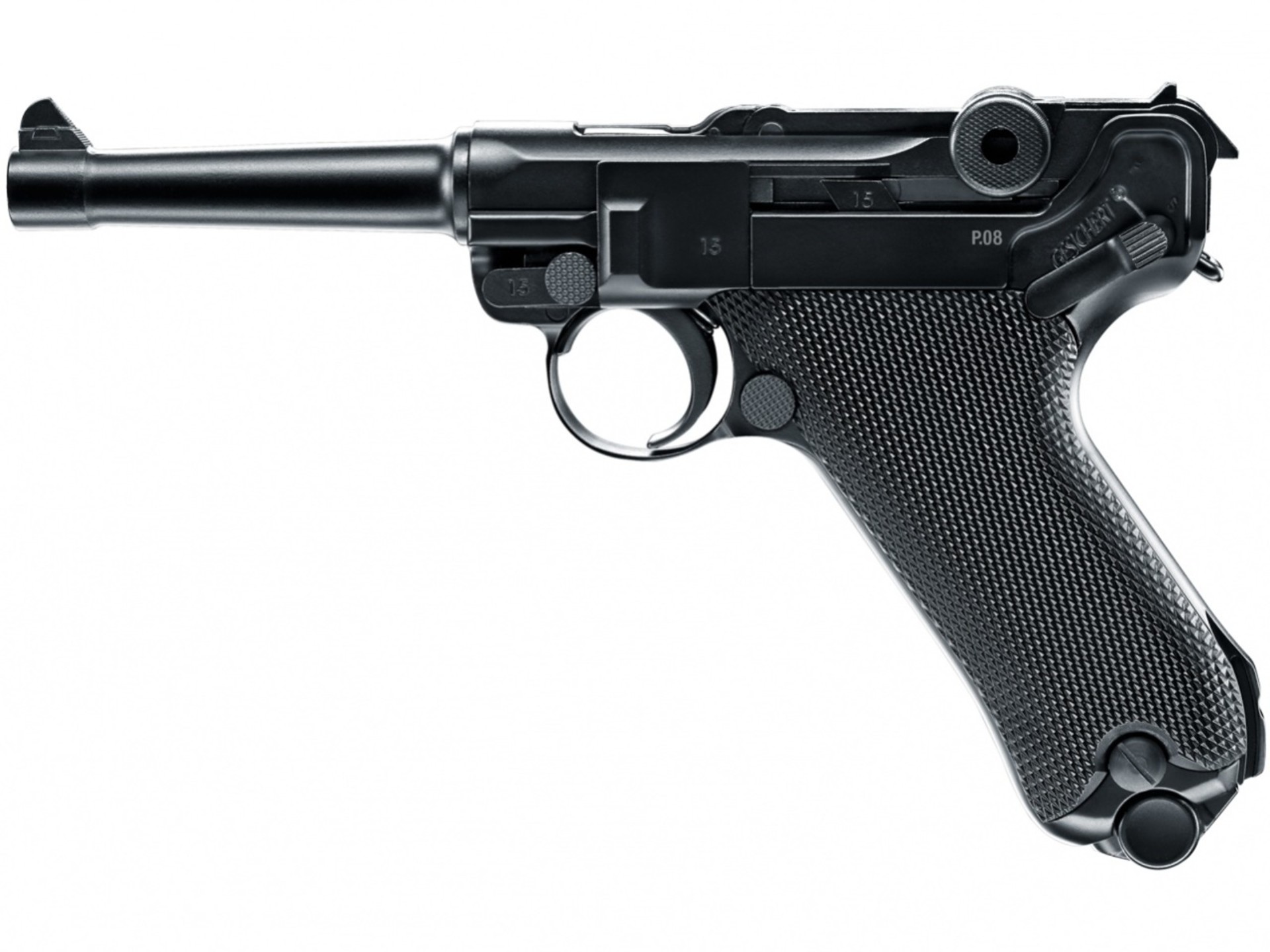 Dlouho očekávaná replika Parabellum P08 od Umarexu s pohyblivým závěrem během střelby, věrné celokovové zpracování doplněné o černé plastové střenky s výrazným vroubkováním.